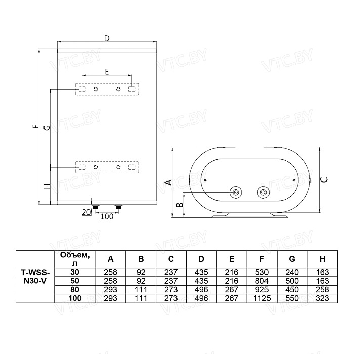 Бренд Timberk Модель Brigantine T-WSS100-N30-V Тип Накопительный Форм-фактор Плоский Объем бака,л 100 Способ нагрева электрический Мощность кВт 2 Внутреннее покрытие нержавеющая сталь Подводка труб Нижняя Расположение вертикальный Способ крепления настенный Гарантия(месяцев) 84 Высота см. 114.5 Ширина см. 49.6 Глубина см. 29.3 - Отзывы