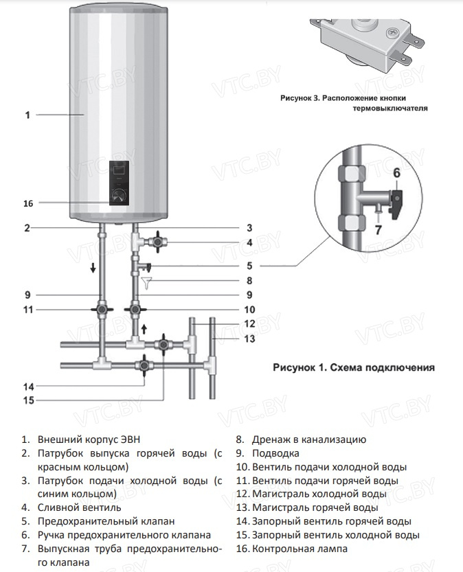 - Предохранительный клапан в комплекте: Защита от избыточного давления.