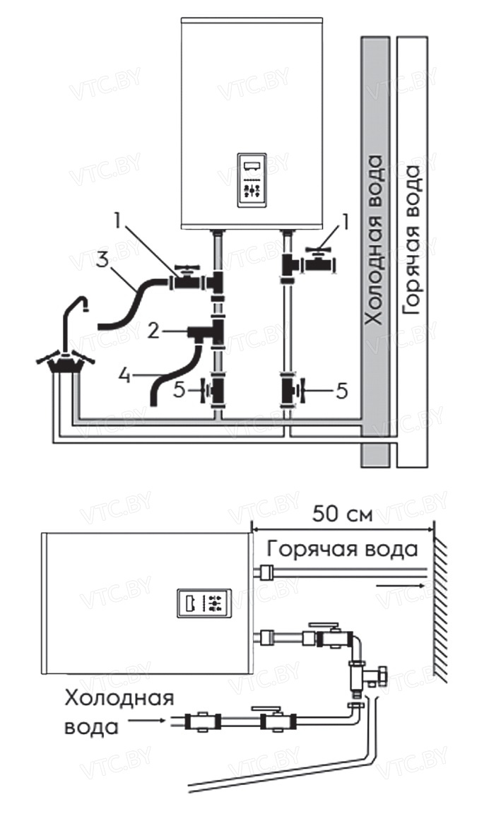 - Предохранительный клапан в комплекте: Защита от избыточного давления.