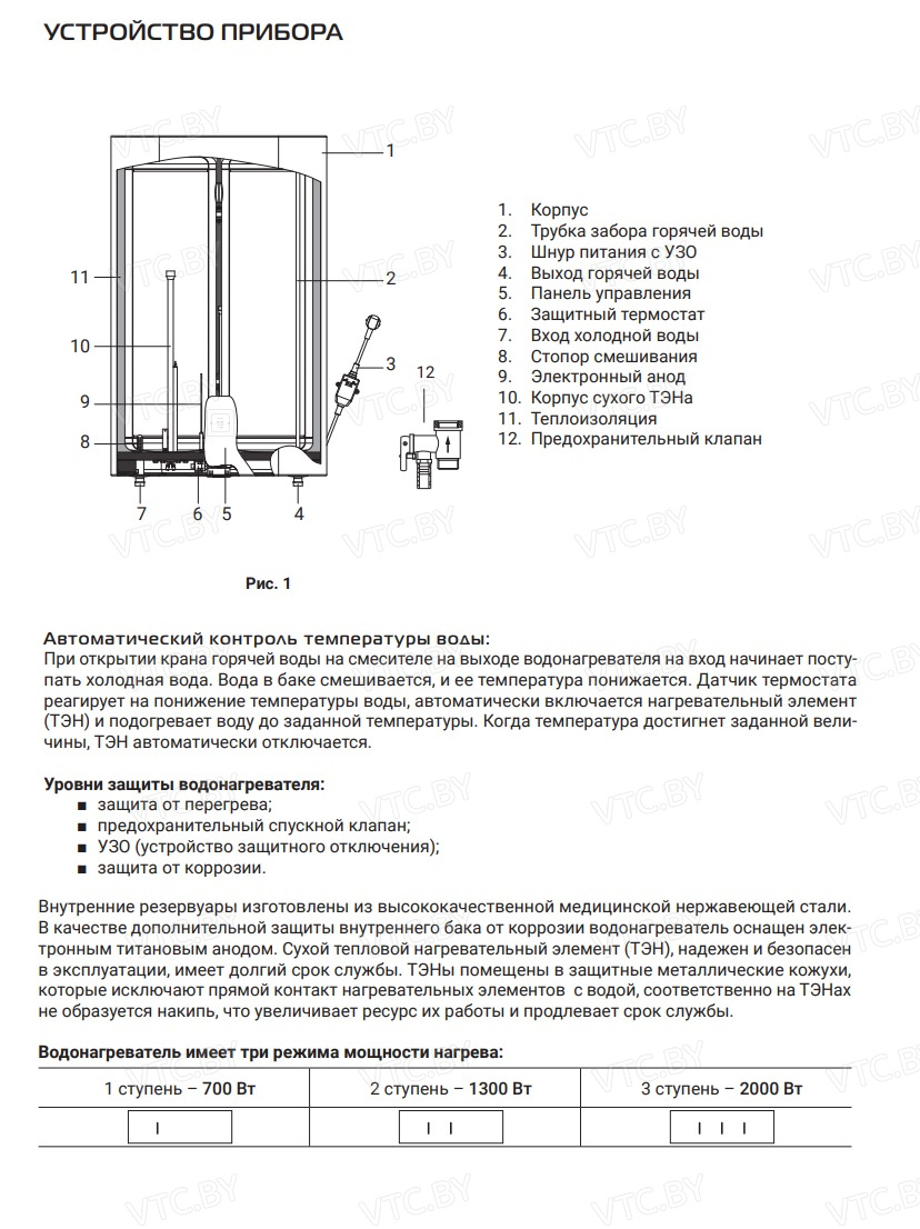 - Бак из нержавеющей стали + титановый анод – защита от коррозии.