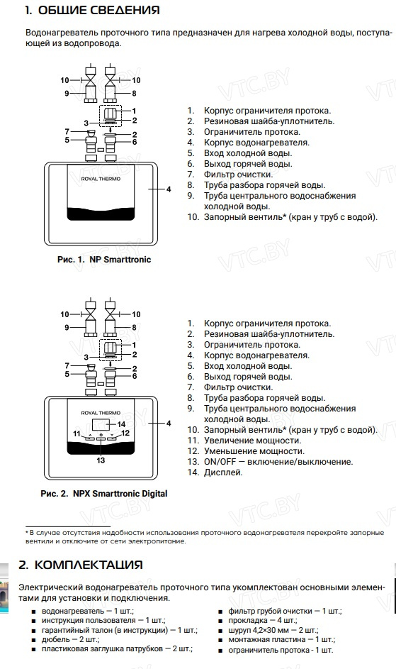 Проточный электрический водонагреватель Royal Thermo NP 6 Smarttronic