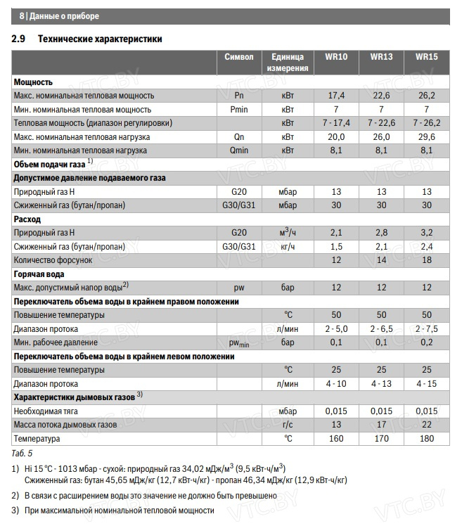 Бренд Bosch Модель Therm 4000 O WR 10-2P 7701331615 Тип Проточный Форм-фактор Плоский Способ нагрева газовый Мощность кВт 17.4 Производительность (л/мин) 10 Камера сгорания открытая Тип розжига пьезорозжиг Управление Механическое Подводка труб Нижняя Расположение вертикальный Способ крепления настенный Особенности Защита от перегрева, Регулировка уровня мощности Гарантия(месяцев) 24 Высота см. 58 Ширина см. 31 Глубина см. 22 -