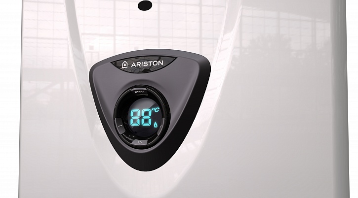 - Электронное управление с дисплеем — обеспечивает удобный ввод и контроль заданной температуры нагрева воды.