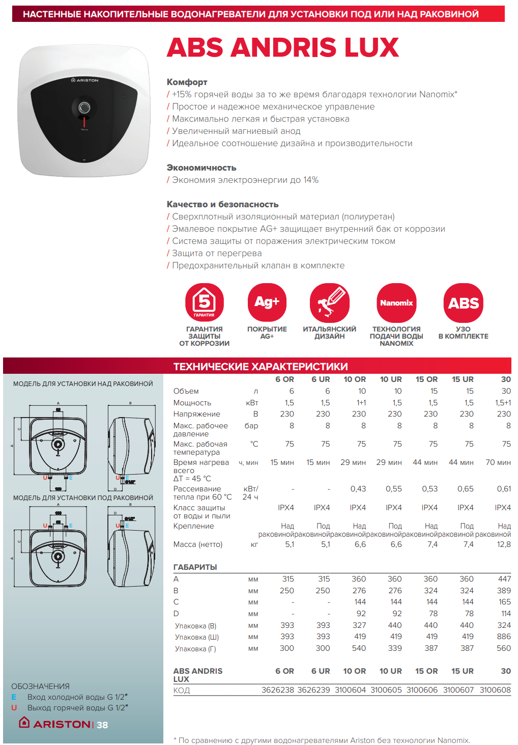 Инструкция Ariston ABS Andris Lux 15 Размер: 4,5 мбЧертеж Ariston ABS Andris Lux 15 Размер: 849,2 кб -