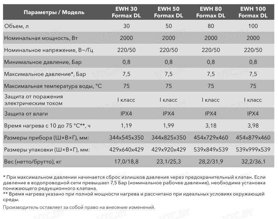 - Гарантия на бак: 7 лет (на основе данных гарантийного талона для серии Formax).