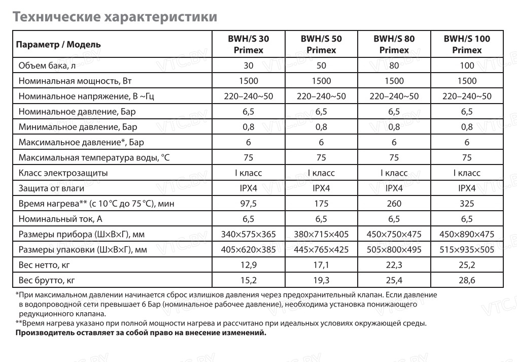 - Время нагрева 97,5 мин: Нагрев 27 литров от 10°С до 75°С.