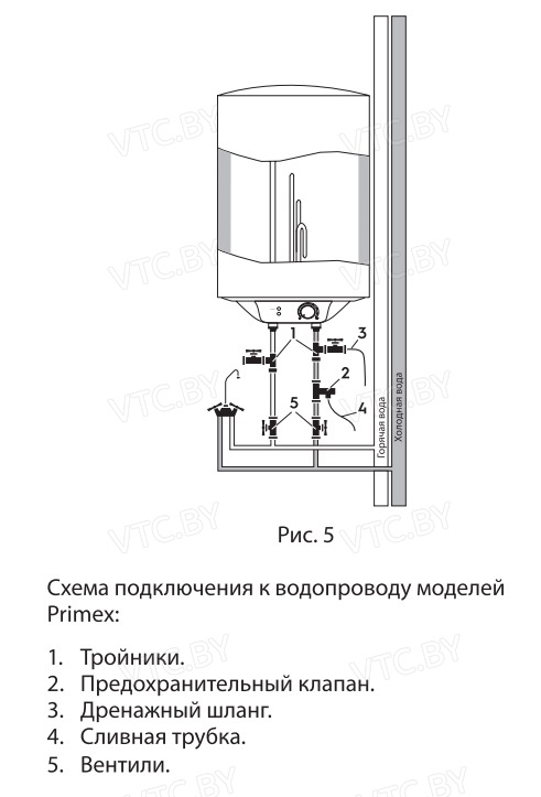 - Предохранительный клапан в комплекте: Сбрасывает избыточное давление.