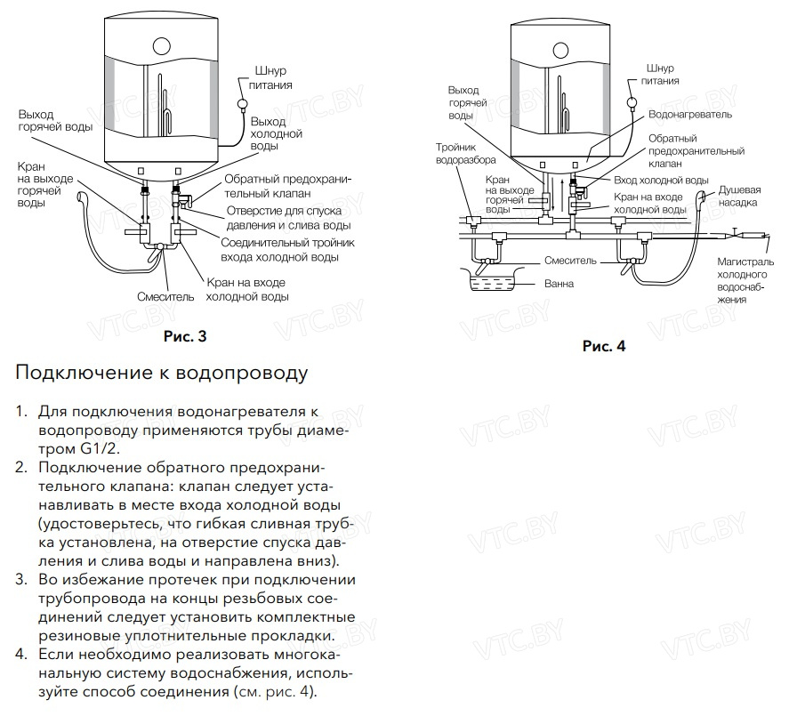 - Предохранительный клапан: Защищает бак от избыточного давления до 6 Бар.