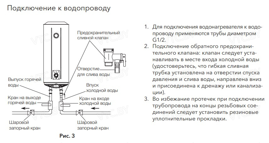 - Предохранительный клапан: Защищает бак от избыточного давления.