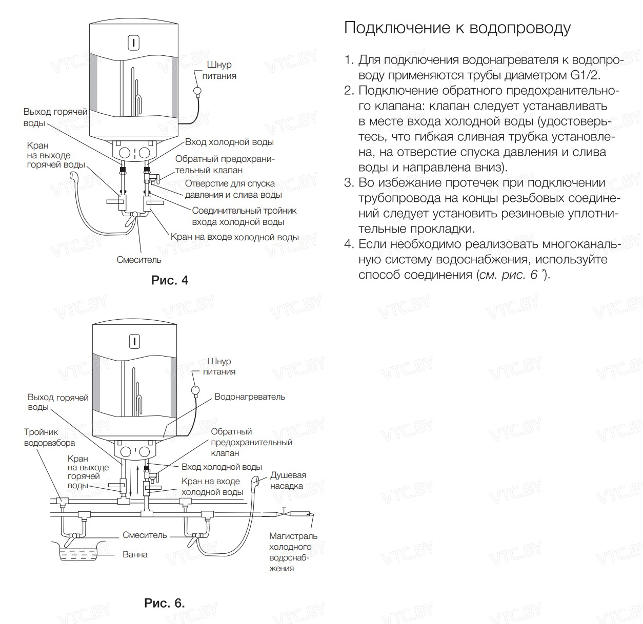 - Защита от превышения давления: Предохранительный клапан сбрасывает избыточное давление до 6 Бар.