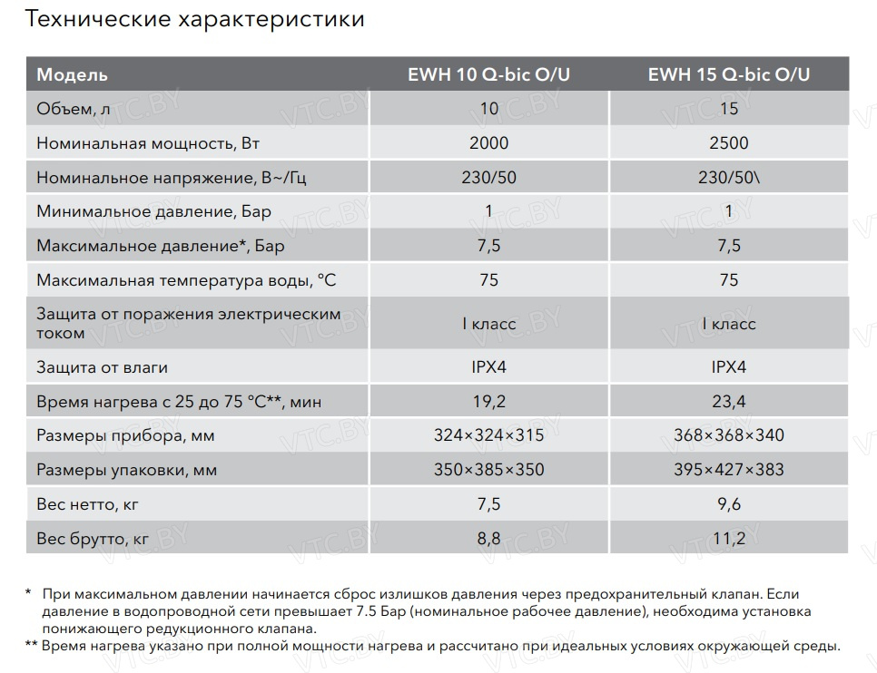 - Три уровня защиты: Защита от сухого нагрева, от перегрева и от превышения давления.