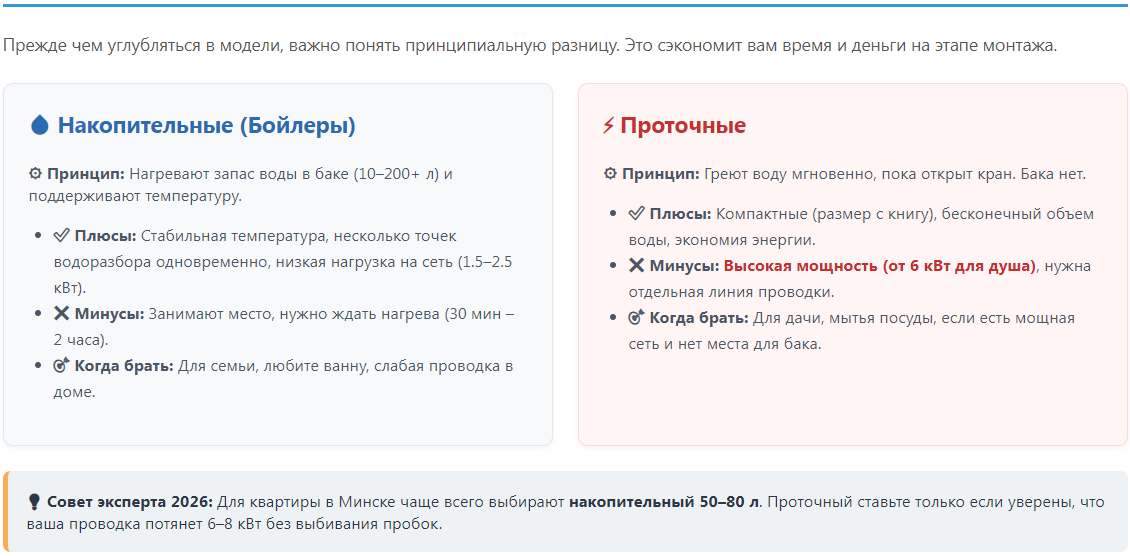 Краткая таблица: Основные типы: Накопительный vs. Проточный